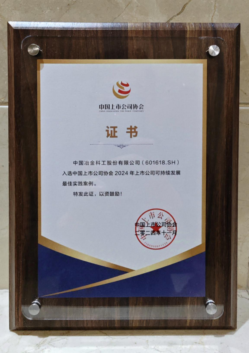 中國中冶榮獲中上協(xié)可持續(xù)發(fā)展ESG最佳實踐案例獎項